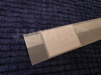Regálové lišty vyrábíme z kvalitního matného (antireflexního) PVC tl. 0,4-0,5mm. Je určena pro vkládání štítků, čárových kódů a popisek na prodejních a skladových regálech, prezentačních stojanech, vitrínách apod. Lišta je opatřena kvalitní čirou samolepící páskou tl. 0,15 mm. která je vhodná k lepení na hladké povrchy - sklo, lakované povrchy,